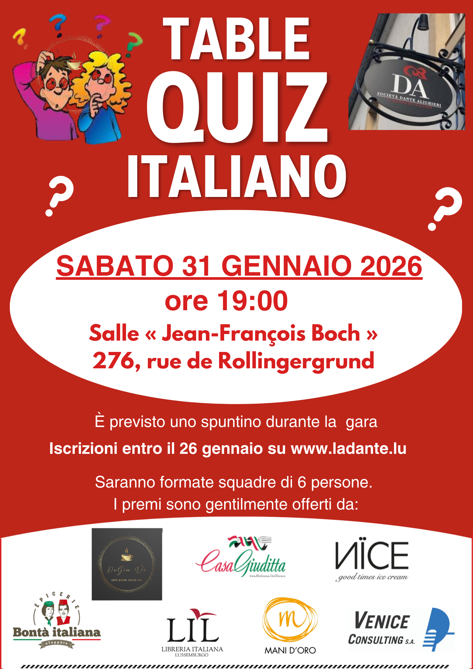 Torna il Table quiz italiano della  Società Dante Alighieri Lussemburgo